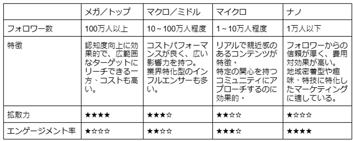 特にフォロワー数が1~10万人程度のマイクロインフルエンサーは、特定の業界やニッチな市場に強い影響力を持ち、よりターゲット市場に的確にリーチすることができ、従来の広告手法では難しい消費者層へのアクセスを可能にしてくれます。