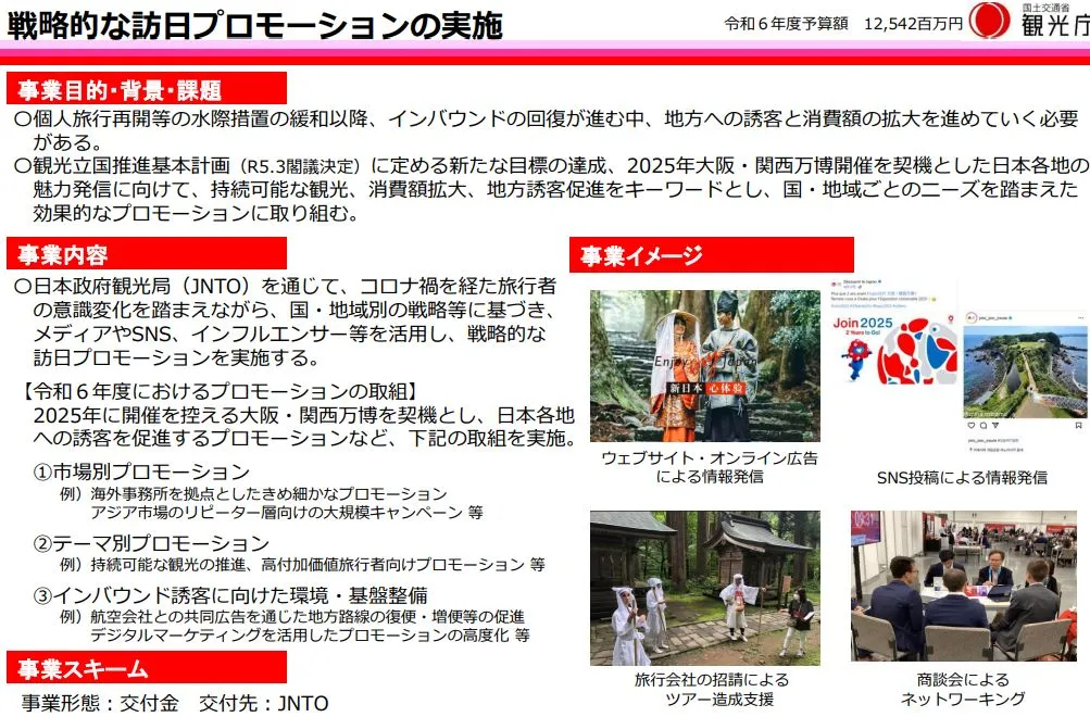 引用画像:令和6年度 日本観光庁関係予算決定概要